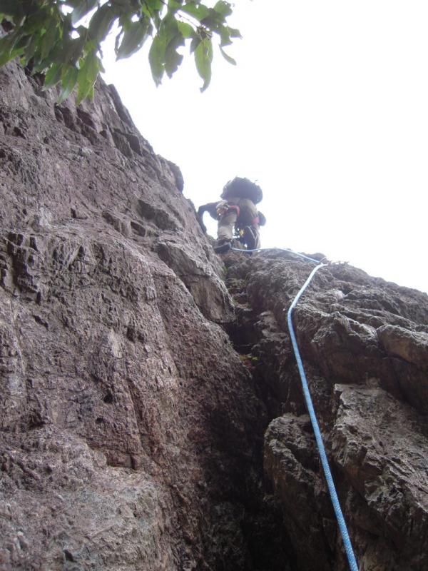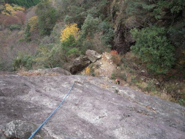 1ピッチ目は傾斜もゆるくグレードは低いですが、取付きから10mくらいボルトがないのでなかなか緊張感があります。