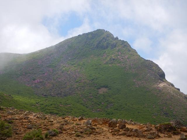 くじゅう分かれ手前のトイレ休憩時に久住山が姿を現してくれました。
