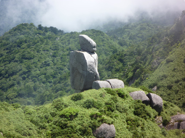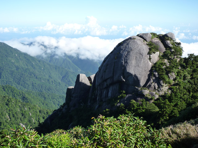 第一展望台からは視界が開け、奇岩群が目を惹きます。平石、翁岳、ビャクシン岳(坊主岩)、投石岳(なげしだけ)など。第二展望台、平石は絶好の休憩ポイント。宮之浦岳のベストビューポイントです(^o^)。途中の急登には何ヶ所がロープが掛けられており、特に雨の日の一枚岩の通過には頼りになります。標高1936mの宮之浦岳は九州最高峰。360度遮るものの無い大展望が広がります。特に奇岩の集まった永田岳を正面に望め、これをバックに記念撮影が定番。またこれから向かう栗生岳、翁岳の眺めも最高です。黒味岳は往復1時間弱でピストン可能。是非行ってみてください。一枚岩の山頂からの眺めは絶景です。花之江河は標高1600mに広がる泥炭層湿原。淀川(よどごう)小屋は淀川のほとりに立つ避難小屋。川は浅く広く、水も驚くほど澄んでいて、夕方まで水遊びをしました。小屋内と周辺にはヤクシマヒメネズミが出没しますので、食料は厳重に封をしておいてください。夜中に僕の周囲をネズミが徘徊していましたし、朝食時には僕たちの食事を狙っていました。