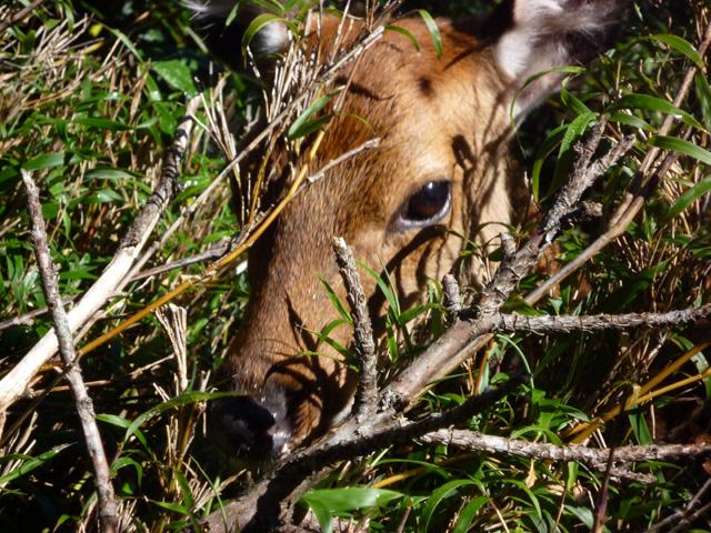 楠川分れからも軌道上を歩きます。この辺りから屋久杉の巨木群が目立ち始めます。大株歩道入口でトロッコ道は終わり高度をぐんと上げます。ウィルソン株はアメリカの植物学者アーネスト・ヘンリー・ウィルソンが紹介。1586年(天正14年)豊臣秀吉の命によって切られたといわれます。なかは畳10畳ほどの広さがあり、清水が滾々と沸いています。縄文杉は樹齢4,000年ともいわれ、1966年屋久町役場観光課長岩川貞次によって発見されました。ここは写真撮影の順番待ちができるほど。しかしそれも13:30頃までです。なぜって??それはこの時刻がツアー客が乗る最終バスの出発までに引き返せるギリギリの時間だから。僕たちは14:00頃のんびりと撮影しました♪ここまでは大勢の登山者がいますがほとんどはガイドをつけた登山者で、個人の方もツアーの方もいます。いろいろなガイドの方と話しましたが、それよりも何よりも僕は山でこんなに大勢のガイドを見たことはありません。高塚小屋~新高塚小屋は静かですが急峻な登山道。ヤクシカが多く出没します。事実、夕食は小屋の前の板張りのテント場でのんびり摂りましたが、ヤクシカが僕たちの目の前に出てきてコケなどを食べていました。ヤクシカは登山道にも何度も出てきてくれました。僕たちを見てもほとんど逃げることは無く、むしろ気にせず近づいてきてくれます♪