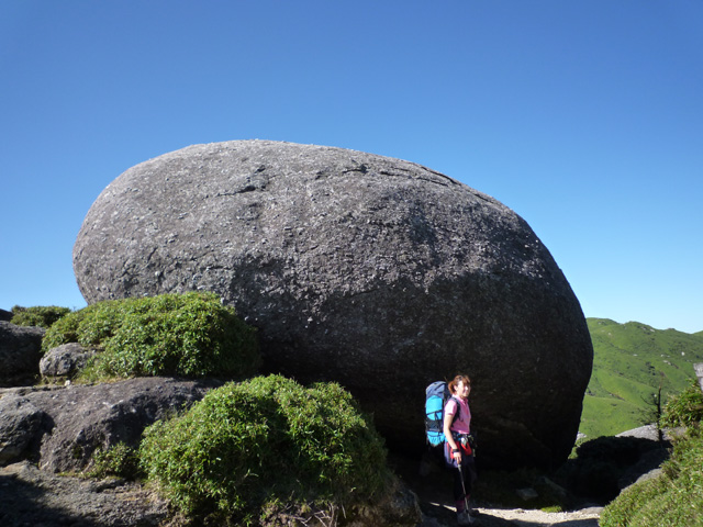 新高塚小屋(7:20)→平石(8:40、休憩)→宮之浦岳(9:45、休憩1時間超)→投石平(11:30)→黒味岳分れ(12:15)→黒味岳(13:20、休憩)→花之江河(14:20)→小花之江河(14:28)→淀川小屋(15:20) 行動時間:約8時間