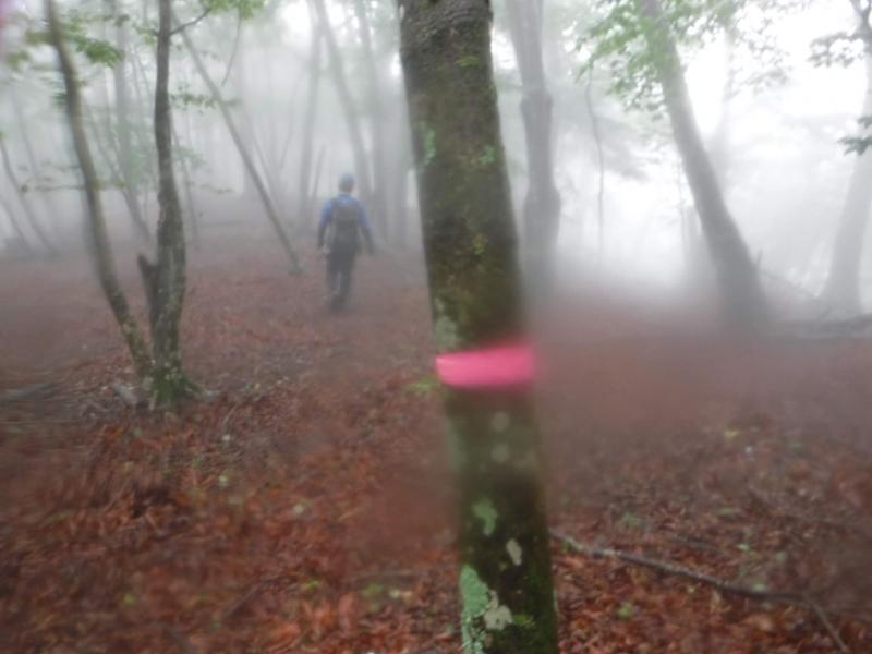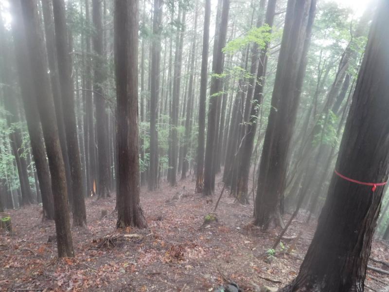 ピンクリボンがあるので地形図と確認しながら下りましたが、踏み跡はほぼなく不明瞭でした。