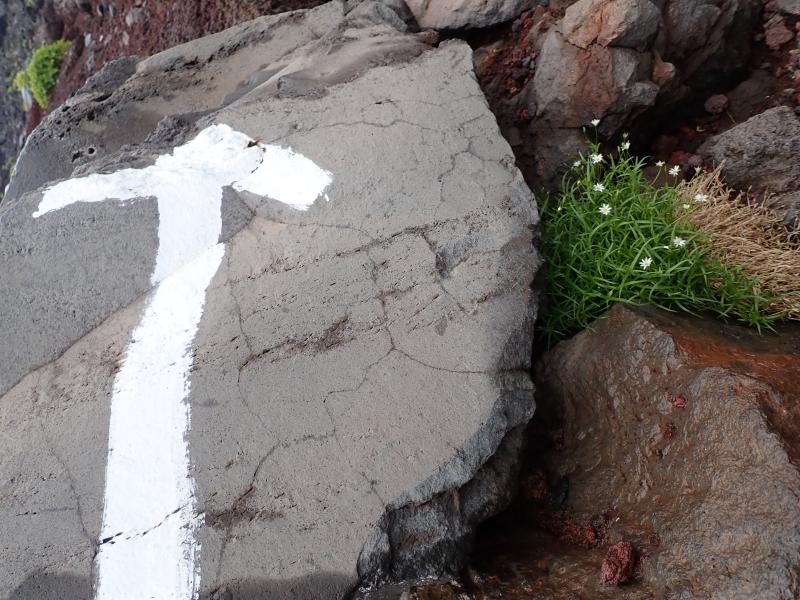 登山道上の崩落などはございませんが基本的に溶岩の砂利や岩のある道です。