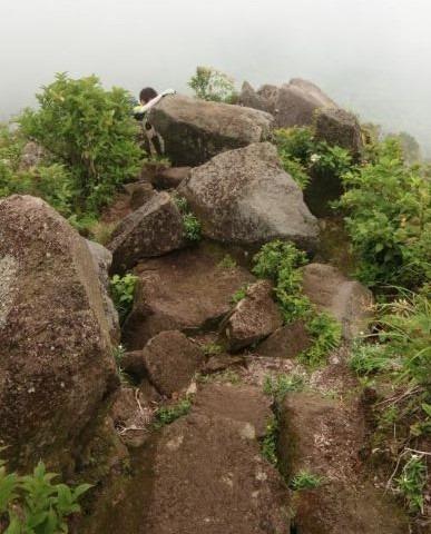 楽しい岩場を抜けると山頂です。クジラのような岩があります。