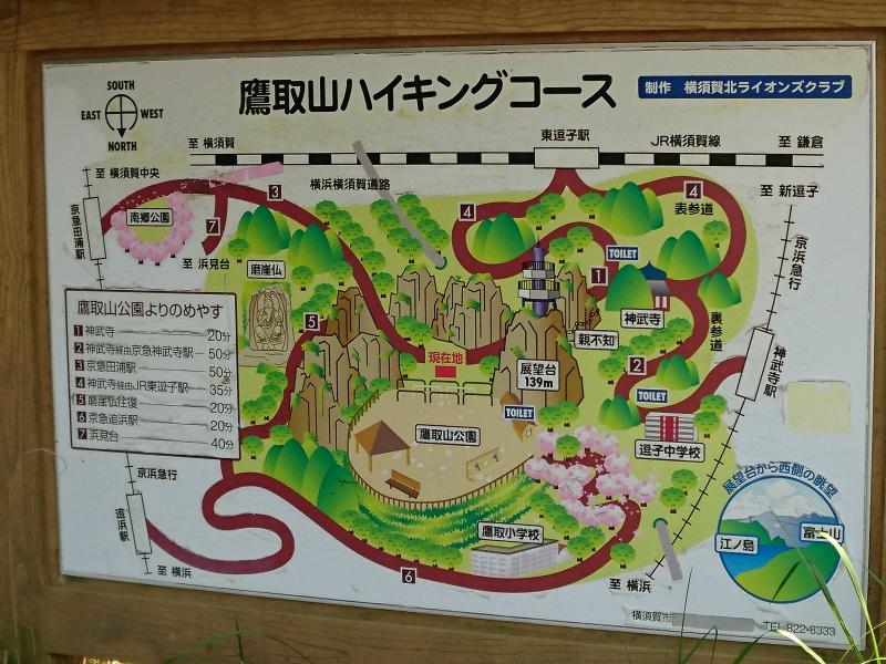 - 京急神武寺駅-(40分)-神武寺-(10分)-奥の院-(25分)-鷹取山-(20分)-奥の院-(10分)-神武寺-(30分)-JR東逗子駅