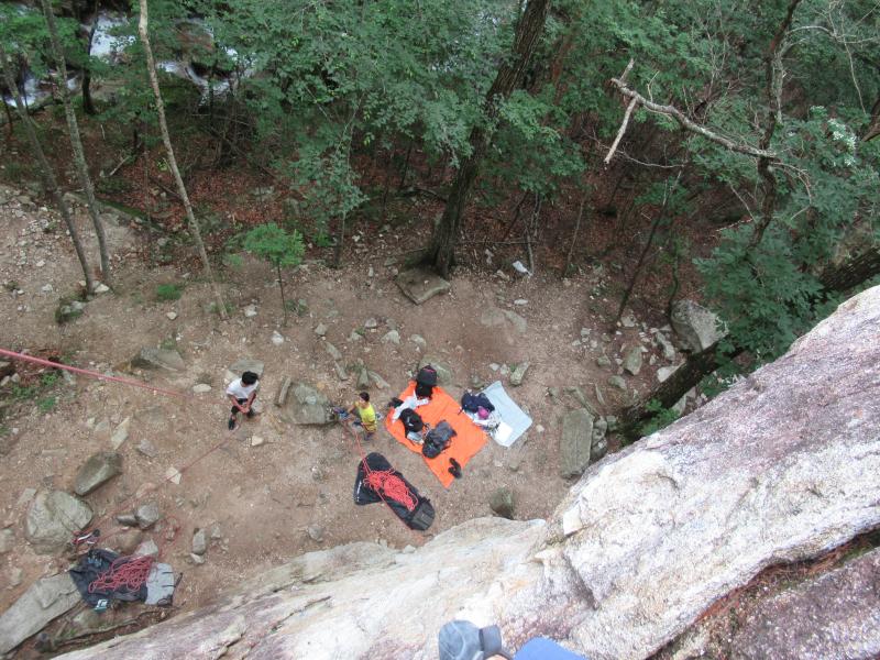 早速AKBがトップロープを張りにいく、またいつスコールがくるかわからない。