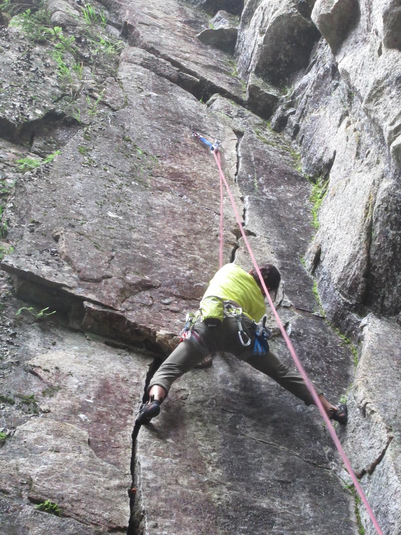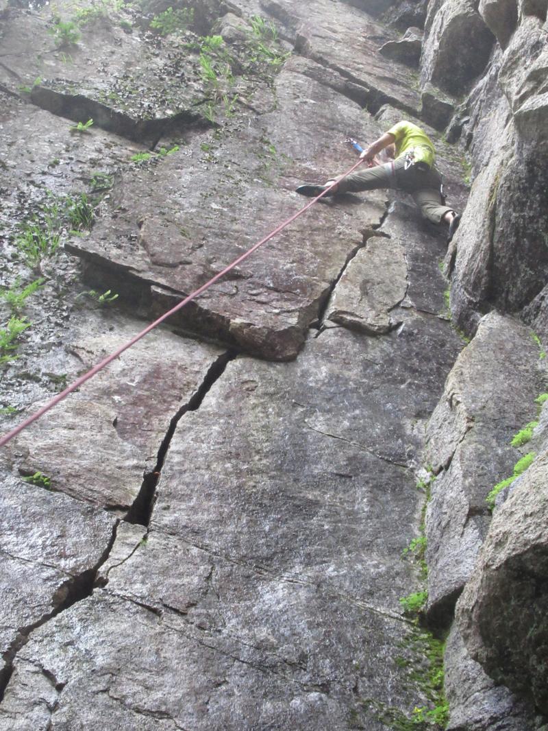 まだ2人が盛り上がっているので、ちょっとクラック交じりの湿ったルートを登らせていただく。