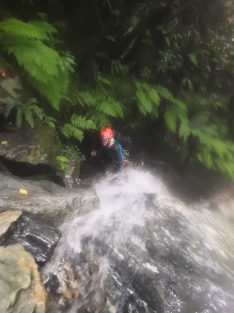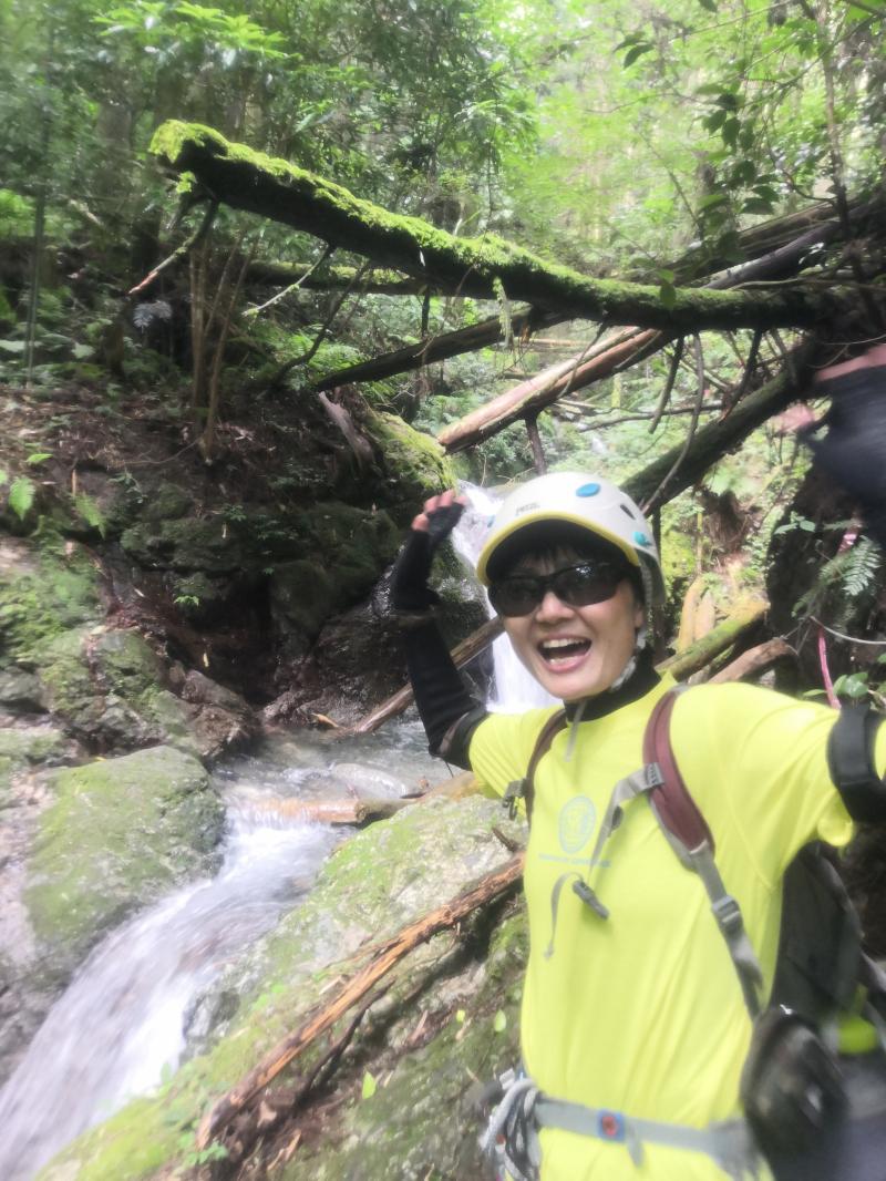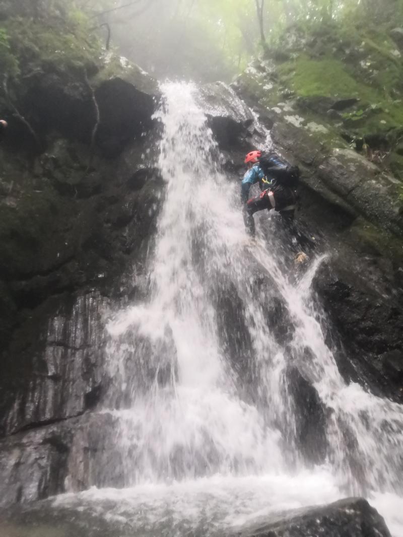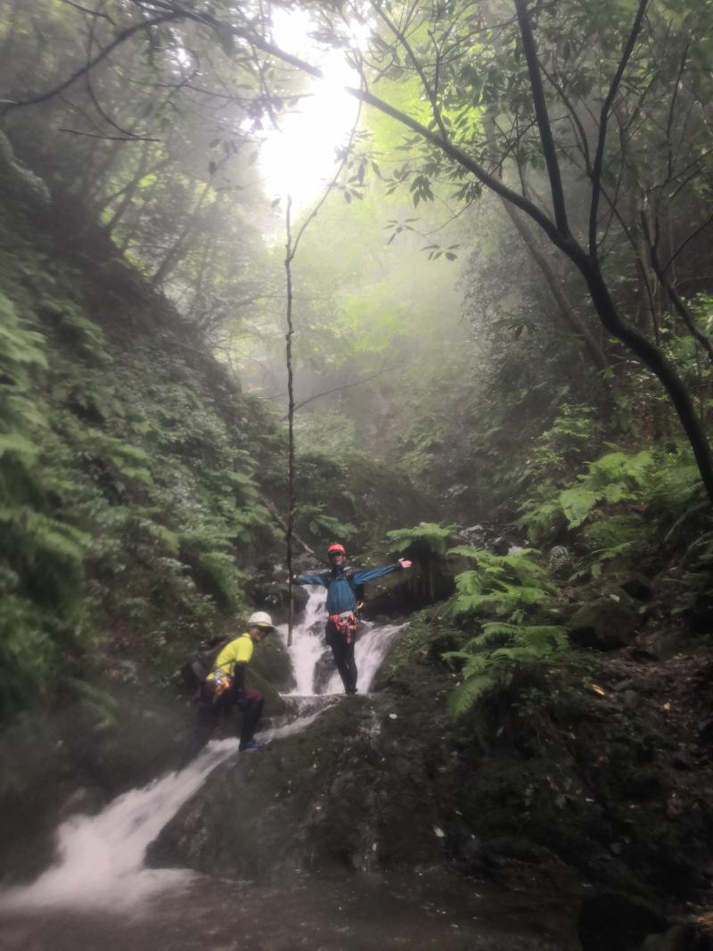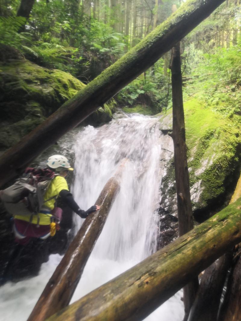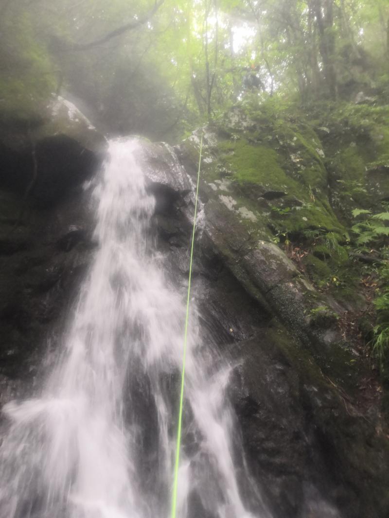 唯一厳しそうな滝が。巻けばよかったのですが、クライマーの魂が出てきてしまいわざわざロープを出してもらって登りました。