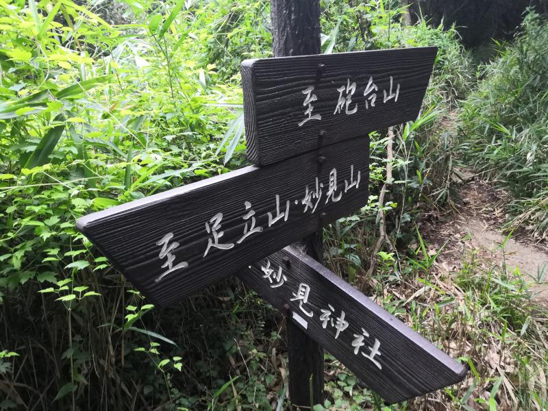 - 妙見神社(80分)→寺内登山口(30分)→ベンチ(15分)→戸ノ上山山頂(20分)→大台ケ原(35分)→沼分岐(45分)→足立山山頂(50分)→妙見神社