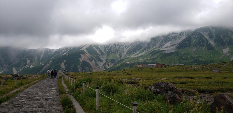 雷鳥沢キャンプ場から石畳の登り坂を頑張って登れば室堂へ到着します。天気予報を確認すると午後から天気が崩れ雷雨の予報だったため、弥陀ヶ原へは行かずバスとケーブルを使って立山駅へ下山しフィニッシュです。