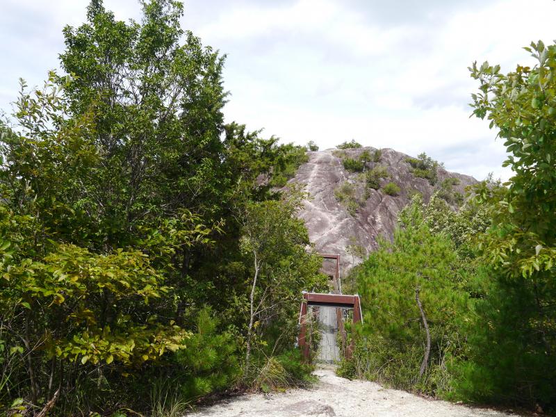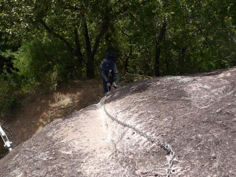 ・笠松山へは吊橋を渡り、クサリが張られたスラブ岩場を通過し、古法華寺経由で登りました。