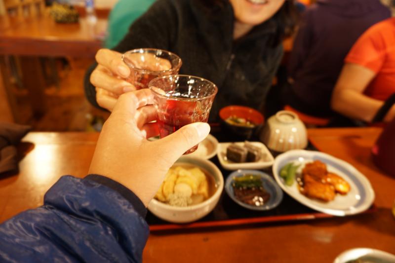 小屋には20名程が宿泊されており、ゆかりさんの音頭で全員で乾杯して評判の手の込んだお食事を頂きました。