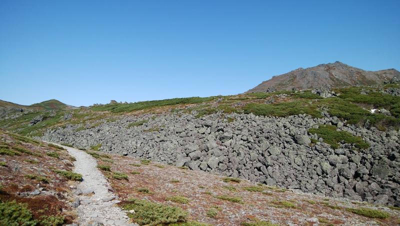 水場から、前トム平までのガレ場では、ナキウサギの鳴き声を聞きながら歩けます。