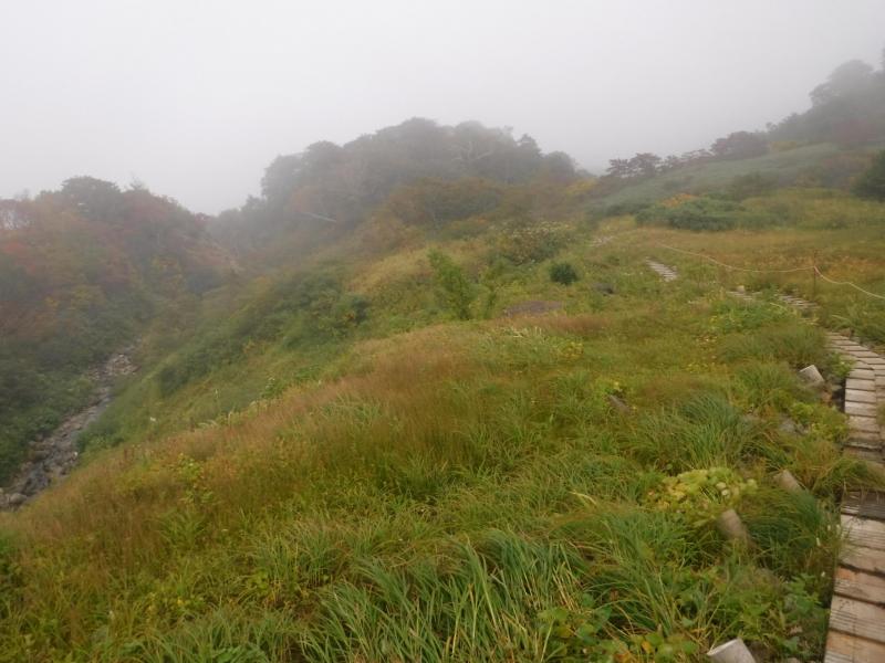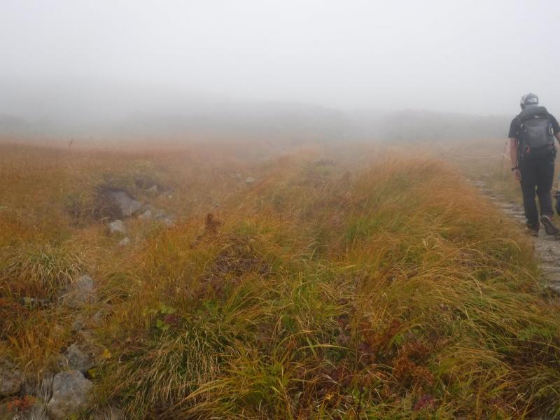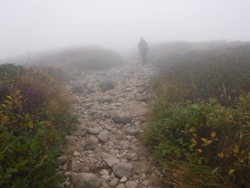 晴れていれば中沼から焼石岳が見え、沼に映った焼石岳が見えるはずでしたが、この日は真っ白で何も見えず。