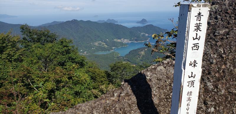 青葉山は東西別々の頂をもつ双耳峰です。この日は非常に良い天気だったため若狭湾がキレイに見渡せました。