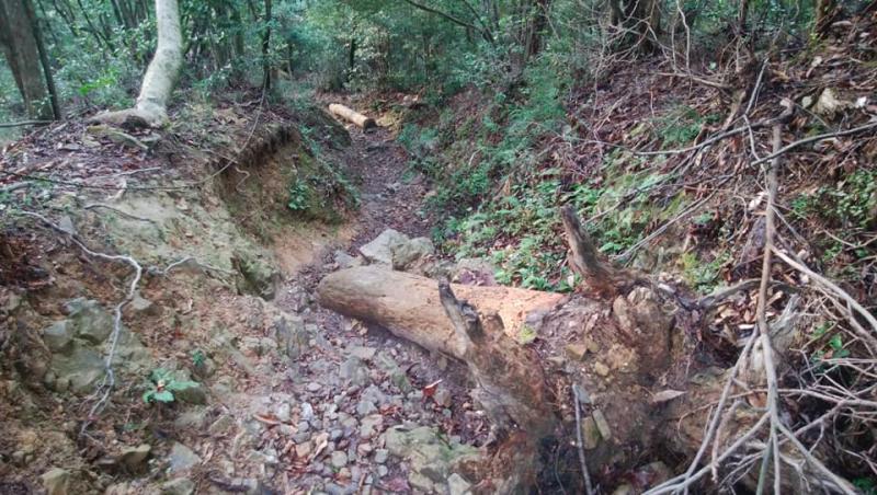 昨年の台風の影響で、倒木多いですが、整備されています。トレイル道は整備されていますが、道が流れており滑りやすいです。