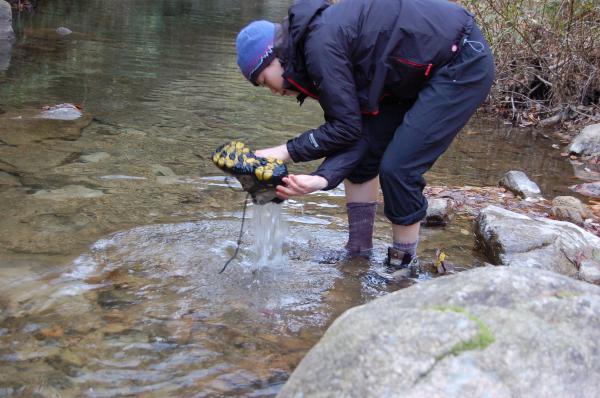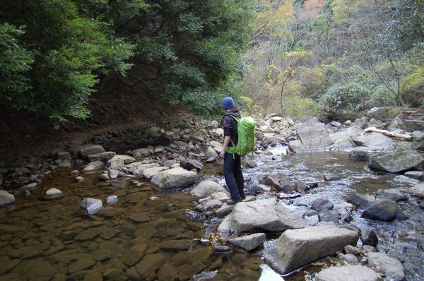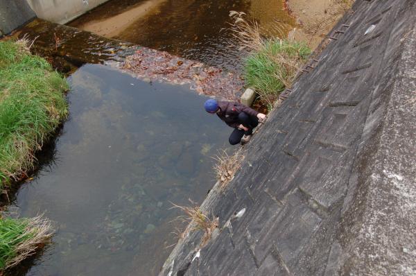 トゥエンティクロスの途中にある堰堤で、荻野さんが寄り道して落ち口に近づいた時、砂州だと思って踏み出した所が沈みこんで靴を水没させました。堰堤には近づかない方がいいようです。