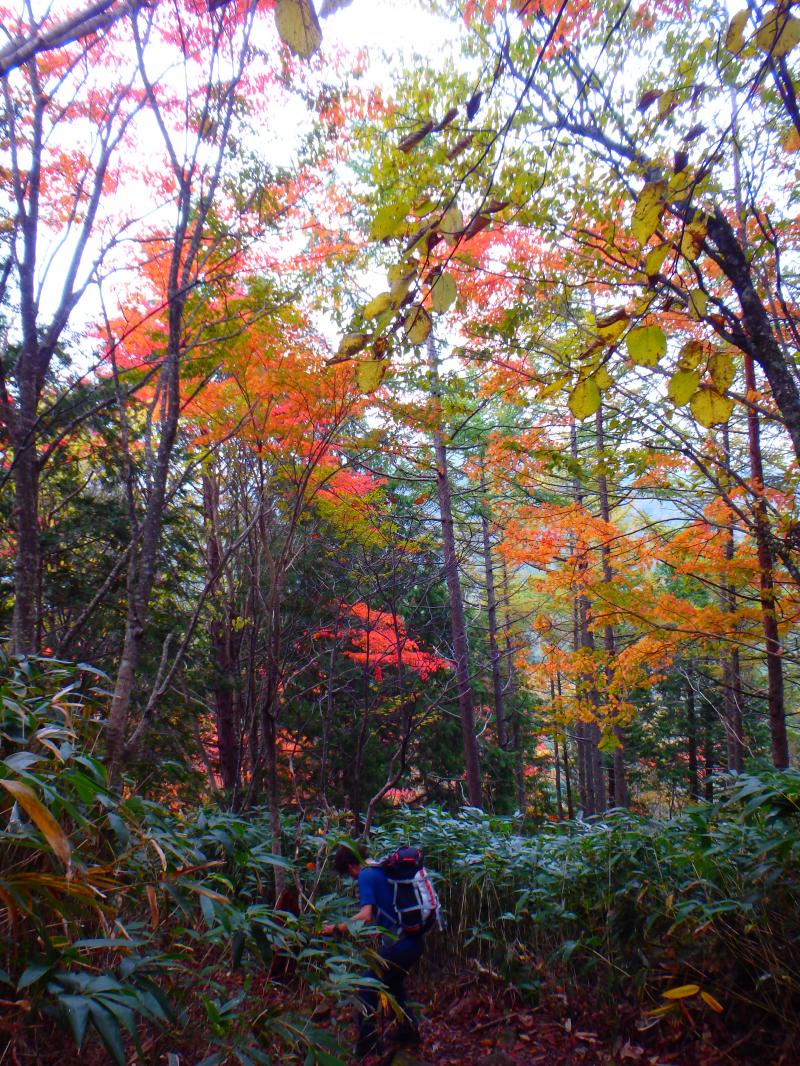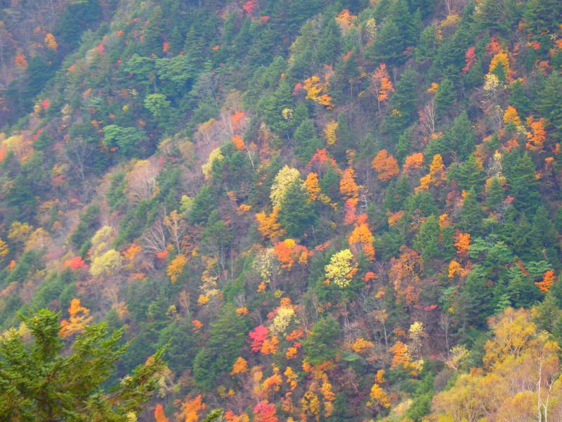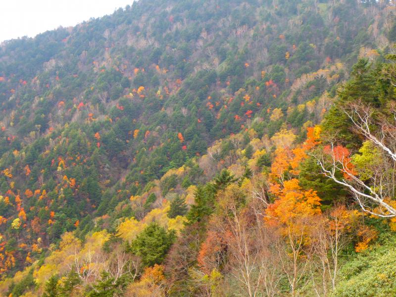 標高が上がってくると、赤・黄色の紅葉が綺麗でした。