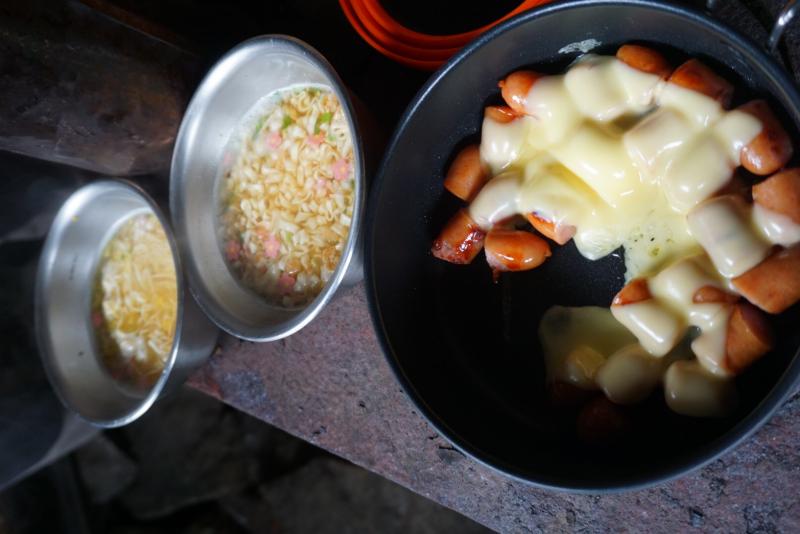 避難小屋では、関東、中部グループによるおもてなしランチを頂いて、幸せな休憩タイム。