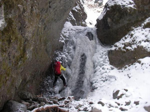 滝は発達がいまいちで、過去の記録では丸みのある緩やかな氷瀑だったところが、