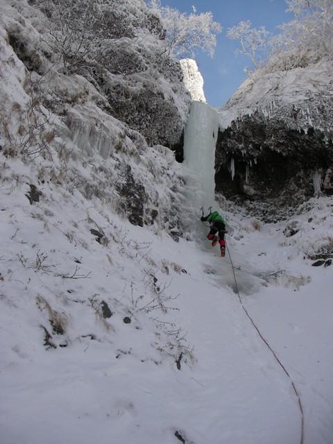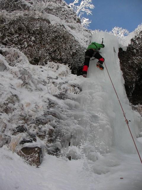 多くが薄すぎてアイススクリューが決まらないですし、ほとんどはロープを出さずにクリアしました。