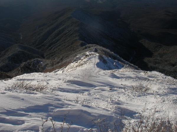 稜線手前の岩棚でツェルトを張り、翌朝ゆっくりと出発。