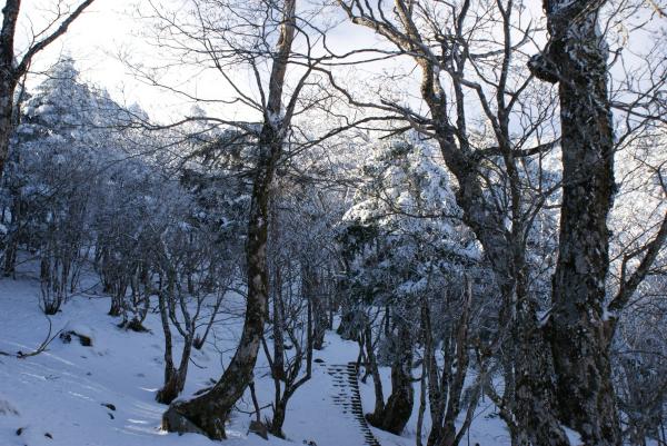 登山口より積雪ありましたのでアイゼン必携。弁天ノ森を過ぎた辺りでは踏み跡が雪でかき消されているところもありました。弥山から八経ケ岳へはしっかりしたトレースがありました。