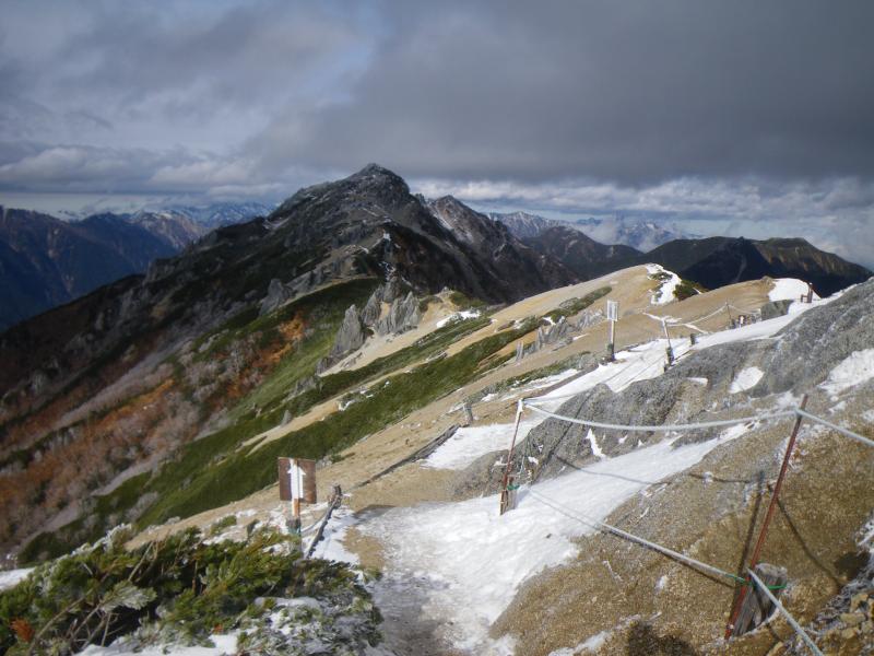 ➇合戦尾根は冬季は鎖が外され、燕山荘直下のトラバース道は冬季は左の冬季ルートを使用