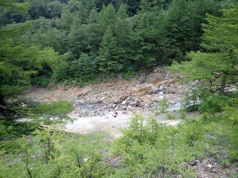 上の登山道から遠めに見えるので、パパっと早めのご支度を。