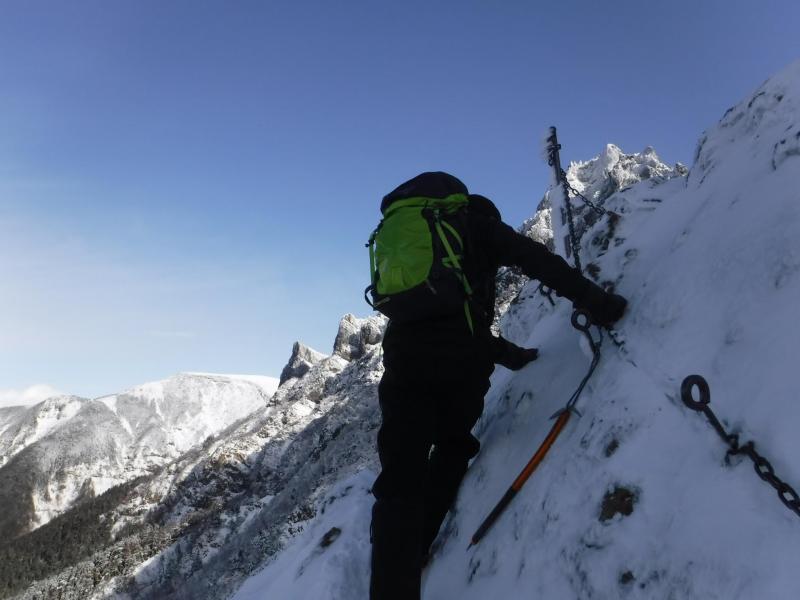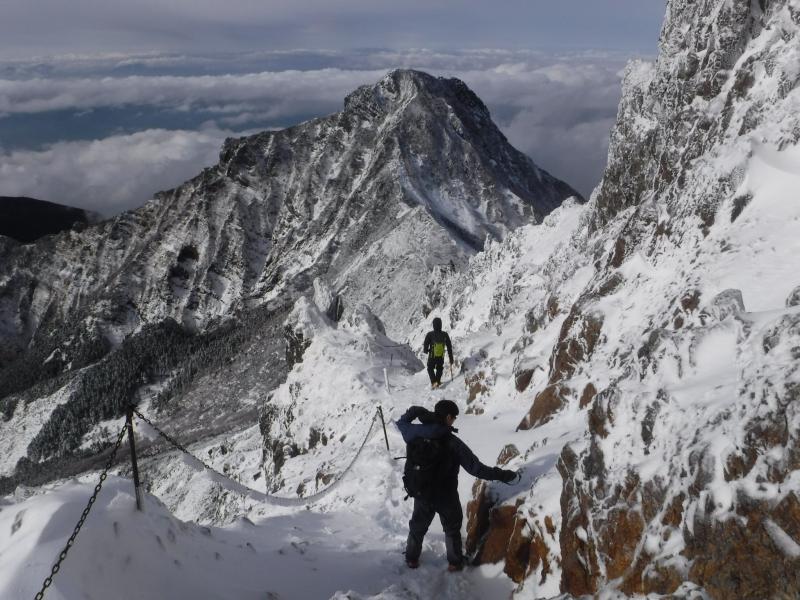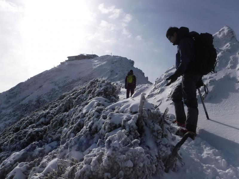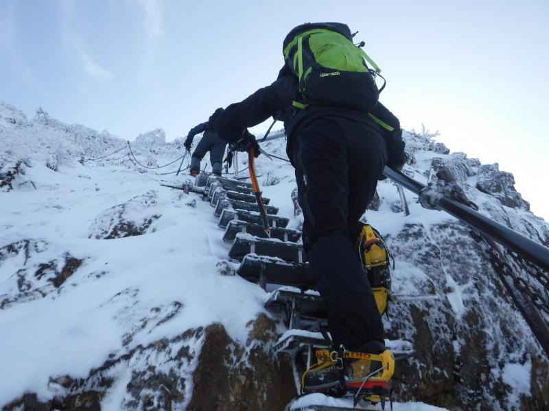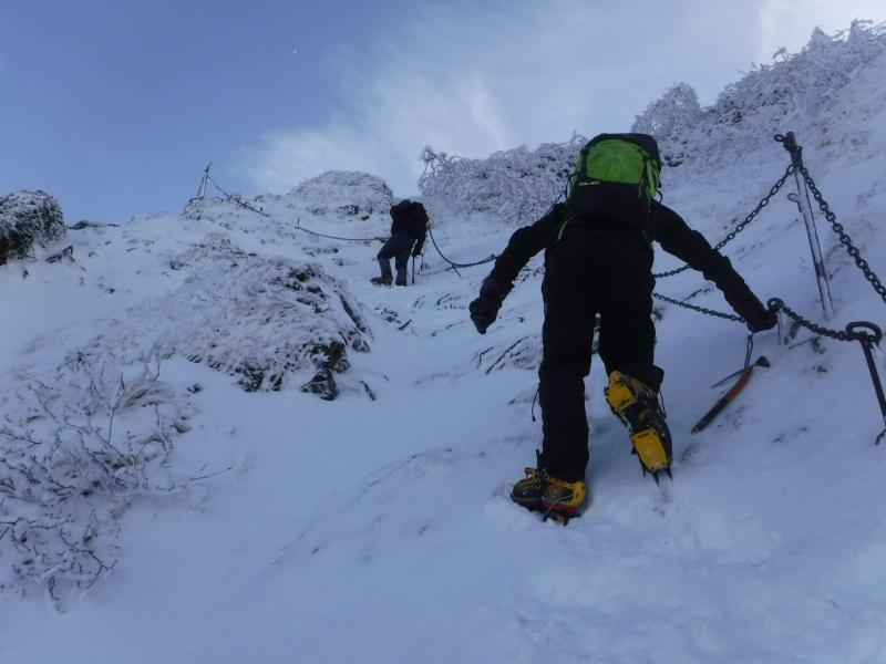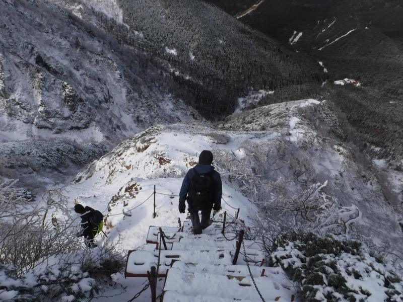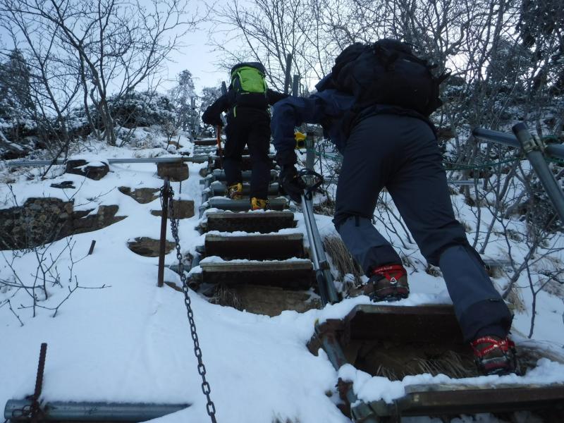 階段、岩場に雪が若干ついていましたが、ほぼ夏道。滑落注意。