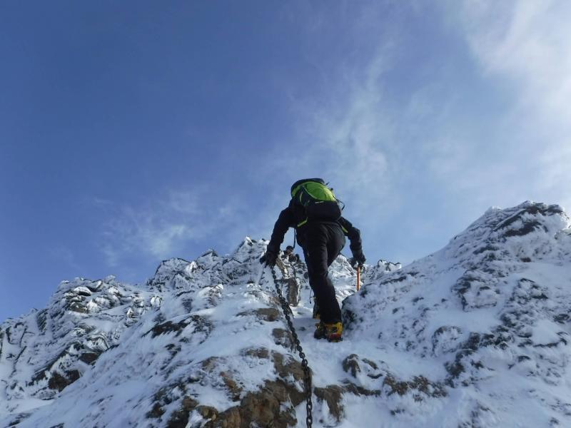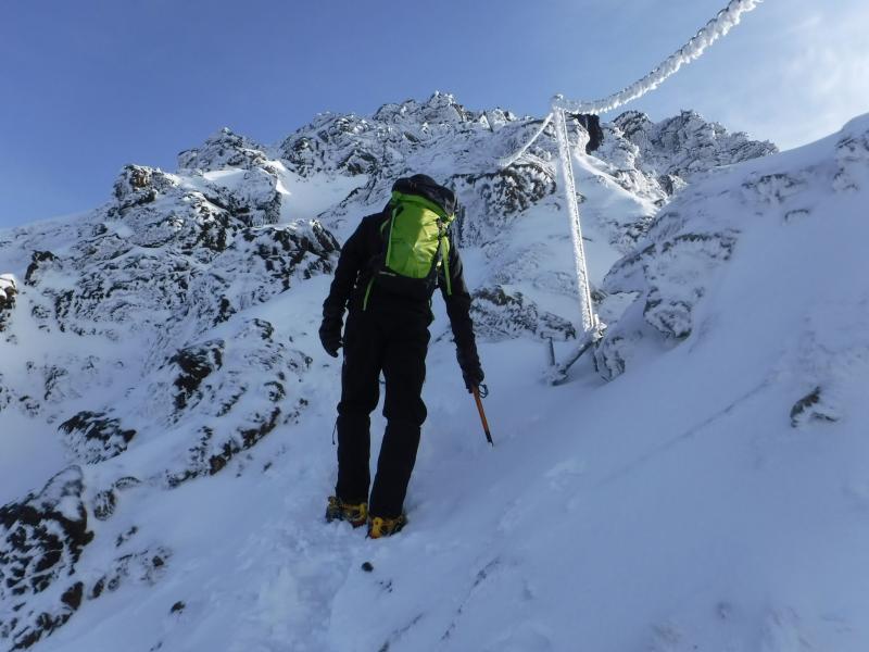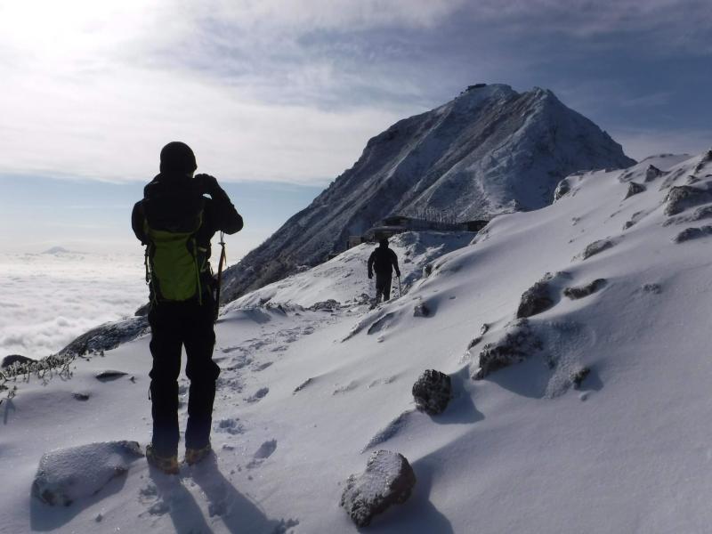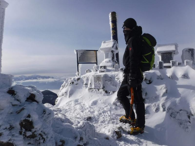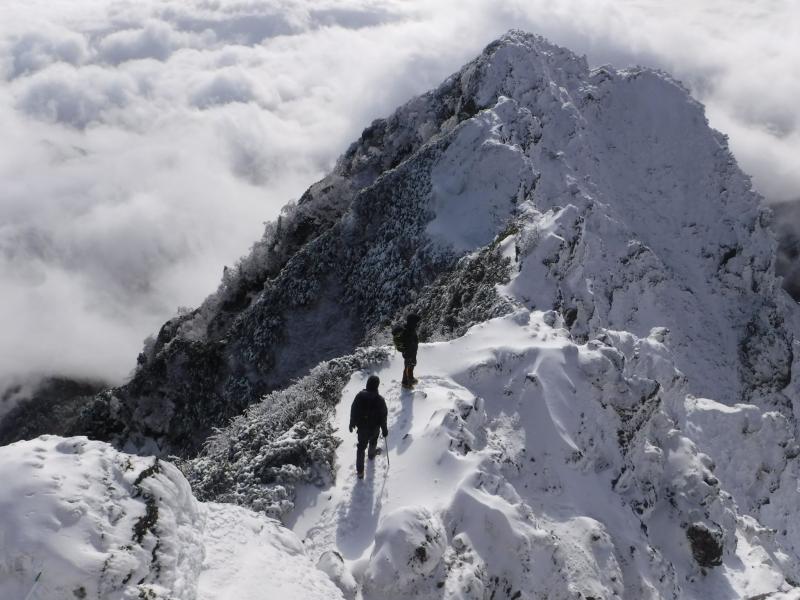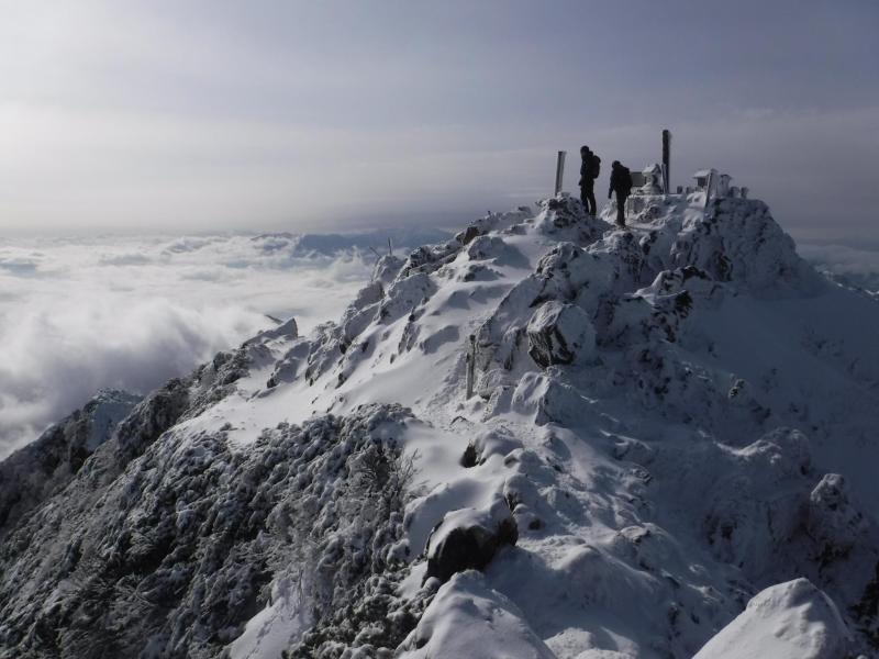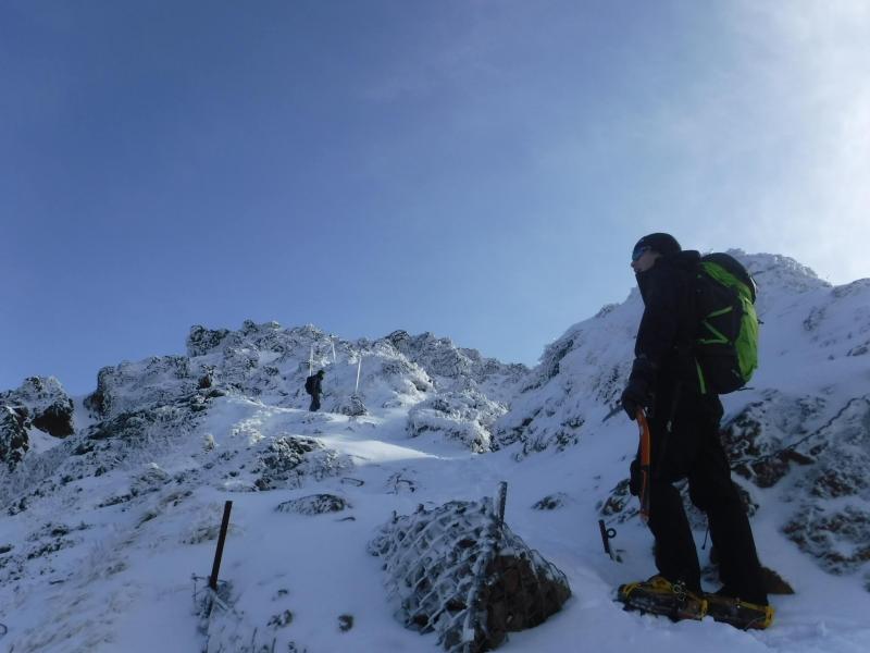 階段、岩場に雪が若干ついていましたが、ほぼ夏道。滑落注意。