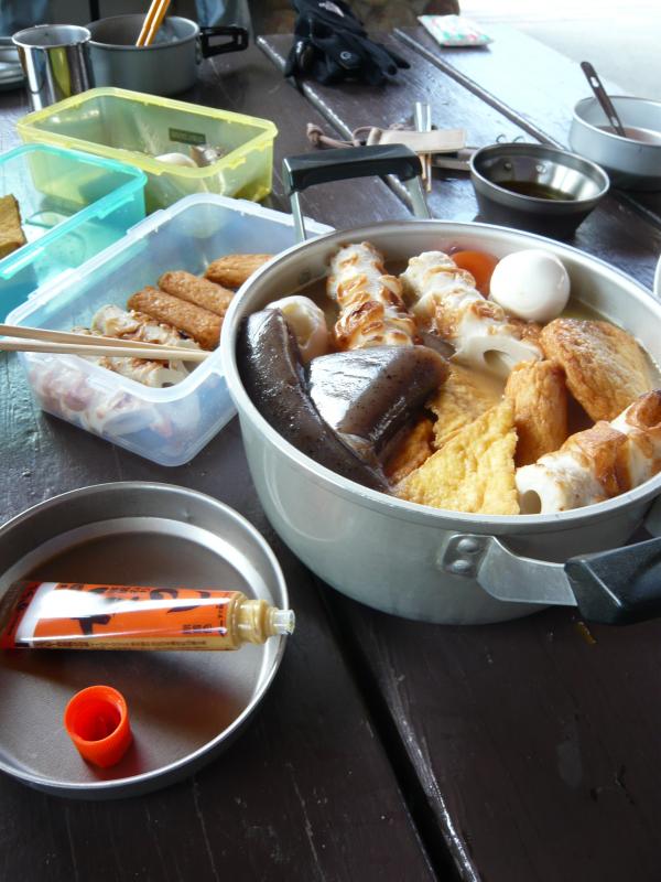 摩耶山上でおでんをほおばる
