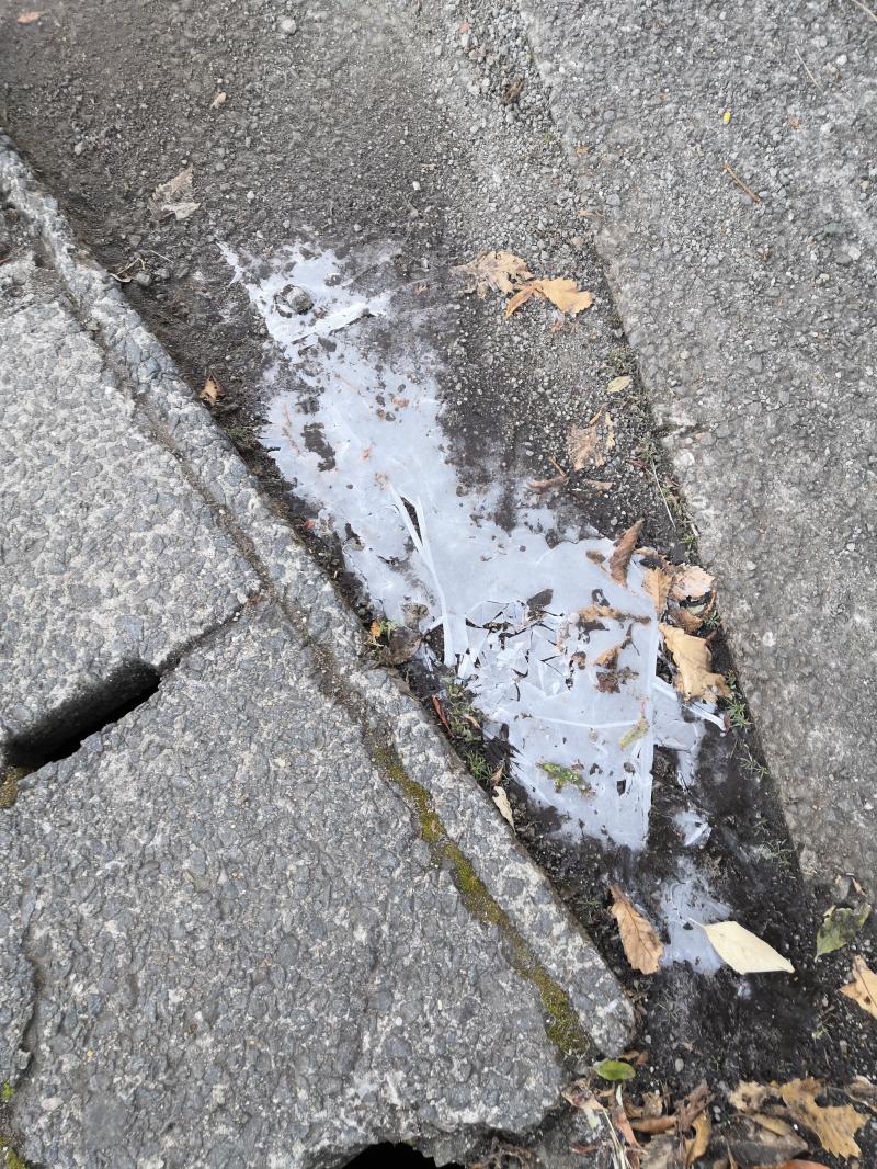 登山口付近の水溜りは凍っており下山してからも凍ったままでした。九重の気温はもう冬になりかけていました。
