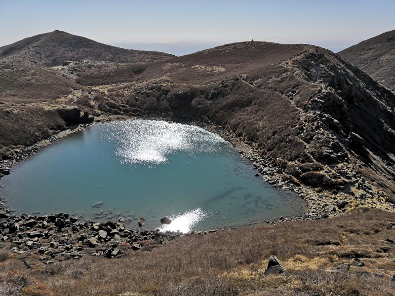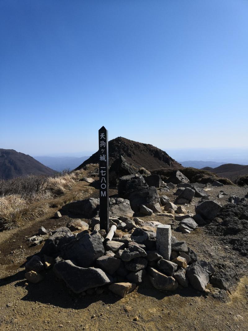 冬は凍る御池を眼下に見ながら天狗ヶ城への急登を登り九州本土最高峰の中岳はもうすぐそこです。