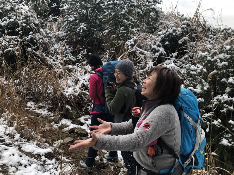 登り初めて20分くらいで初めての雪を見た時は歓声!!
