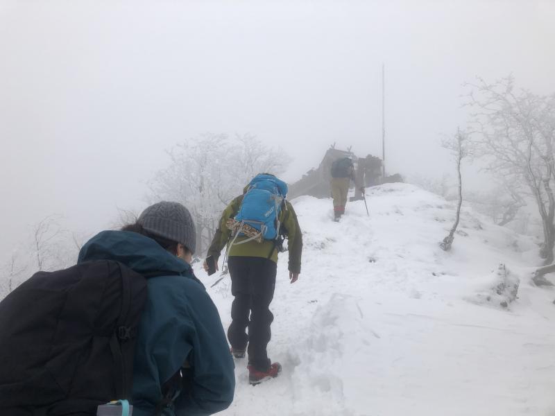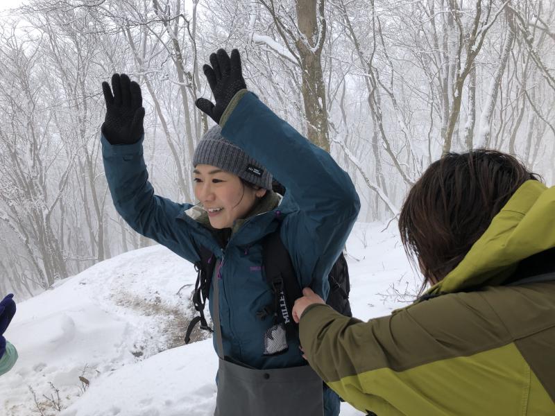 かたや最後の急登では、一気に運動量が上がり「雪山でもこんなに暑いんだ」と汗をかきかき。
