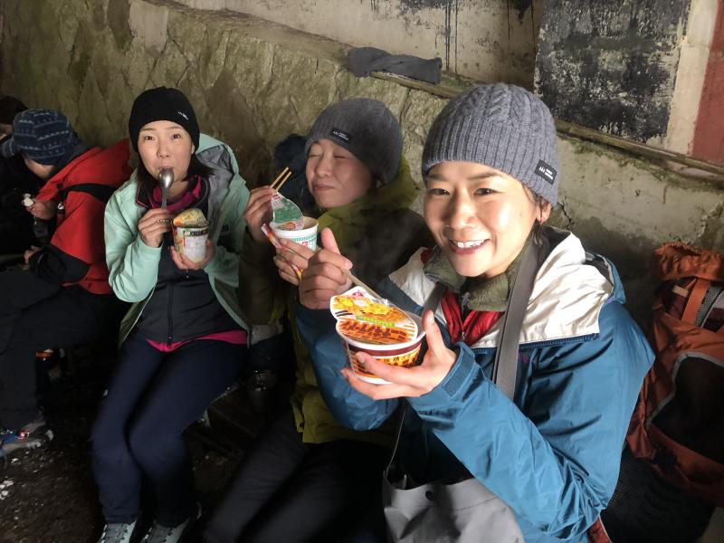 山頂にある避難小屋は満席。混雑を予想しておりましたので、今日は予備のバーナーは使わず