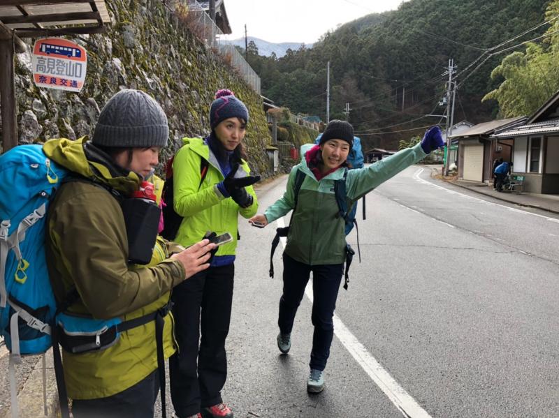 登山口の気温は6℃前後。小物でレイヤリングを整えつつ出発です。