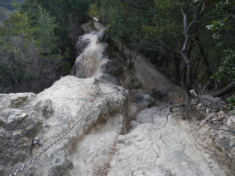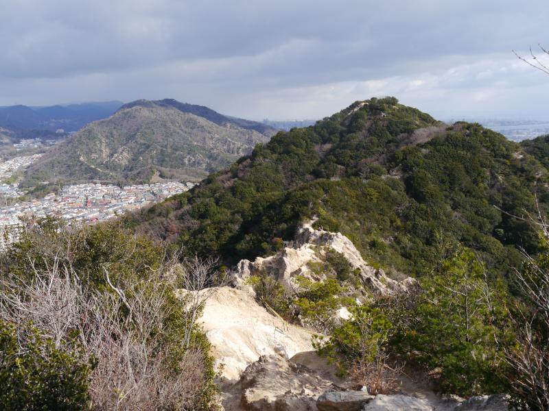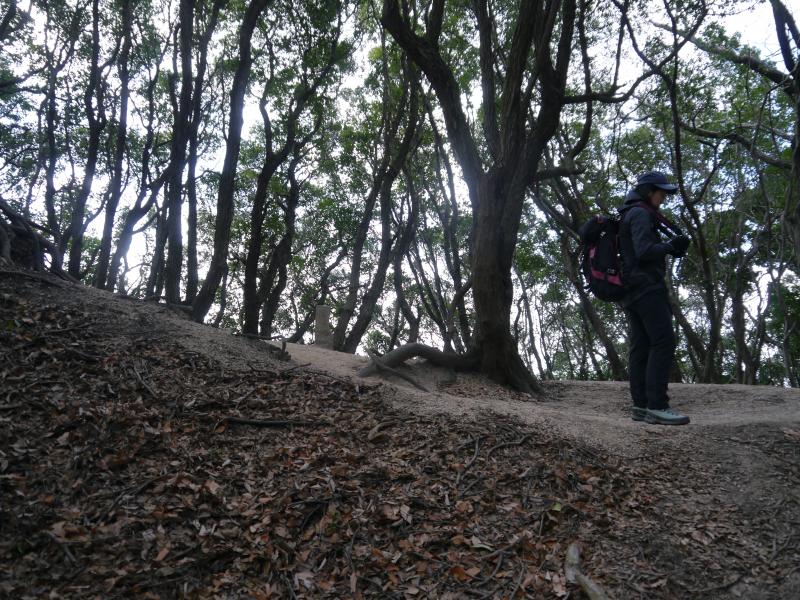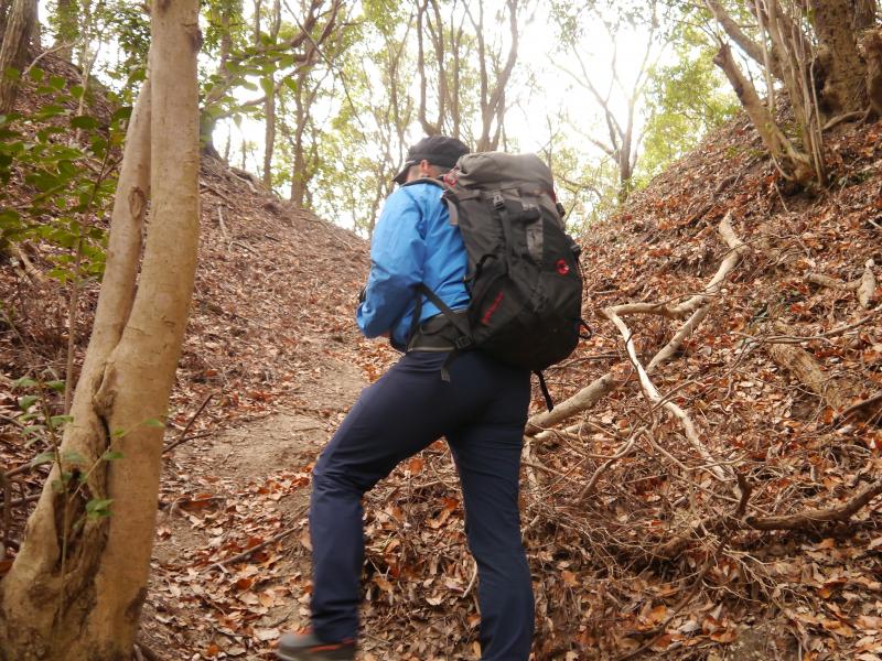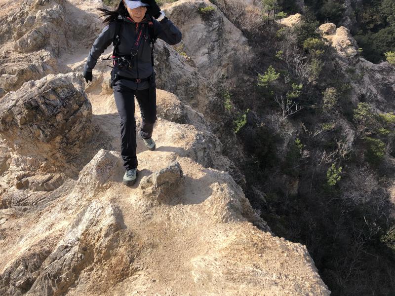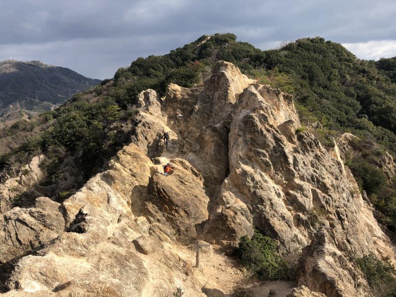 稜線に出たらそこは六甲全山縦走路です。歩きやすく整備されていますが、馬の背と呼ばれる一帯はもろい岩のやせ尾根です。注意して進みましょう。