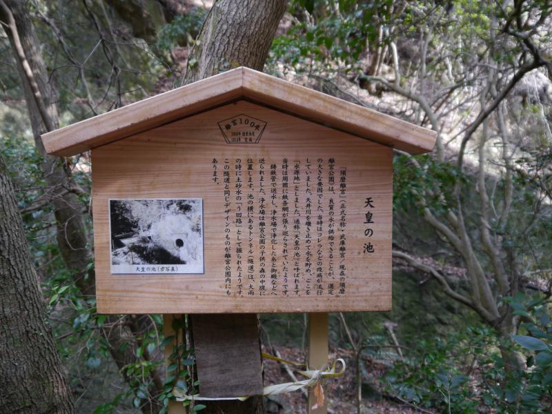 名水の森を奥へ進むと「天皇の池」があります。その近くにあった武庫離宮(須磨離宮)に上質の水源として造られたのが「天皇の池」です。今でも透明な水がたたえられています。