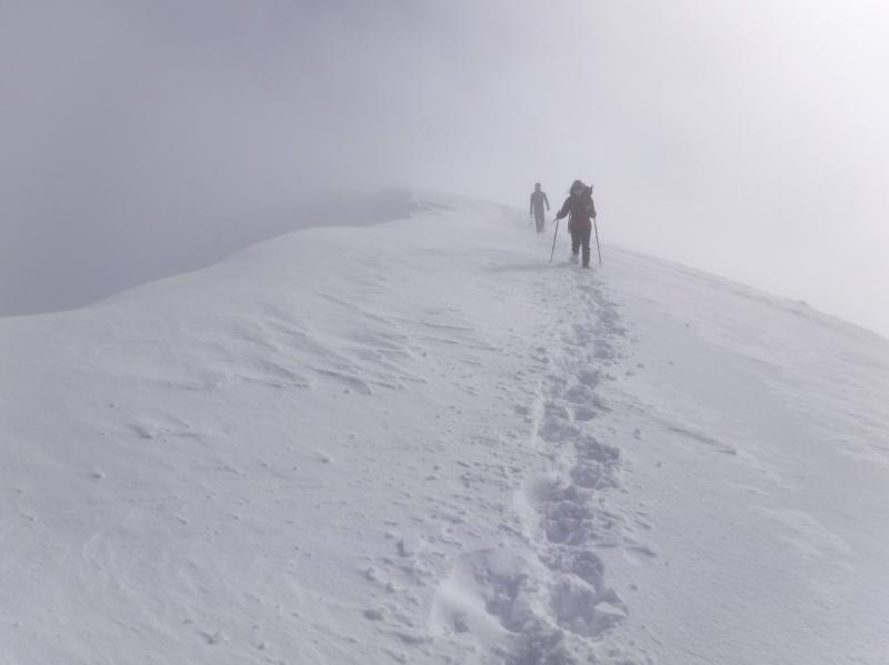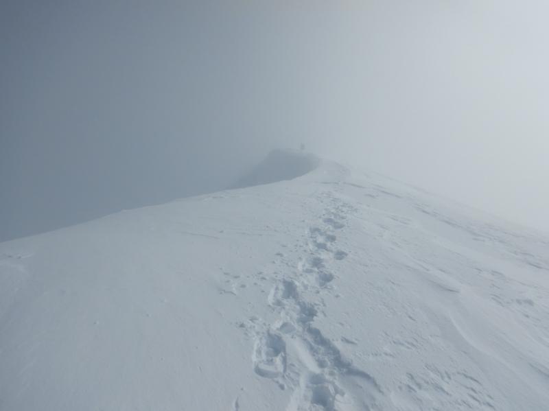 斜面は風も強くなり、雲の動きが早い。真っ青な空がたちまちホワイトアウトの繰り返し。