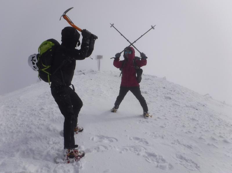 山頂は強風でした