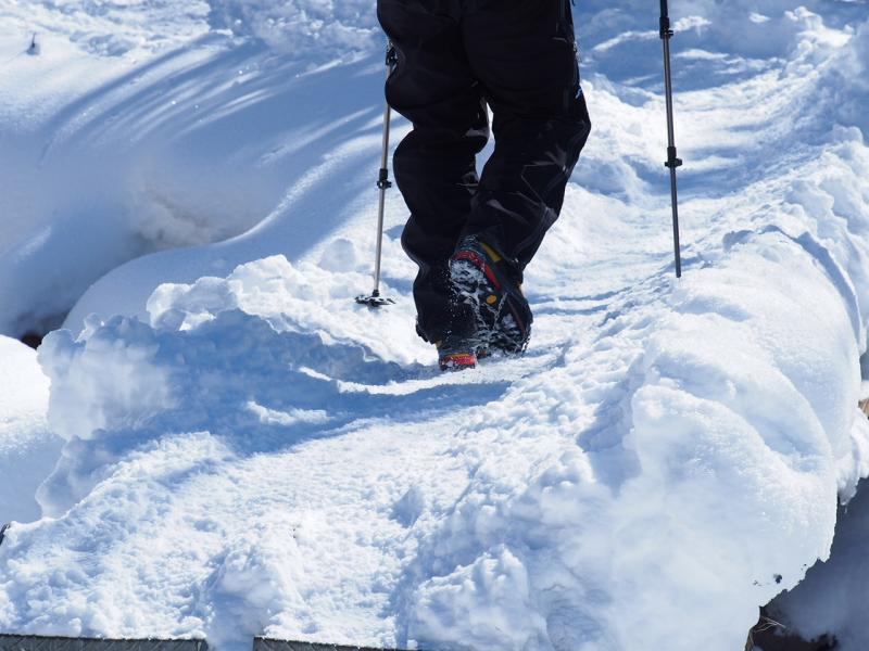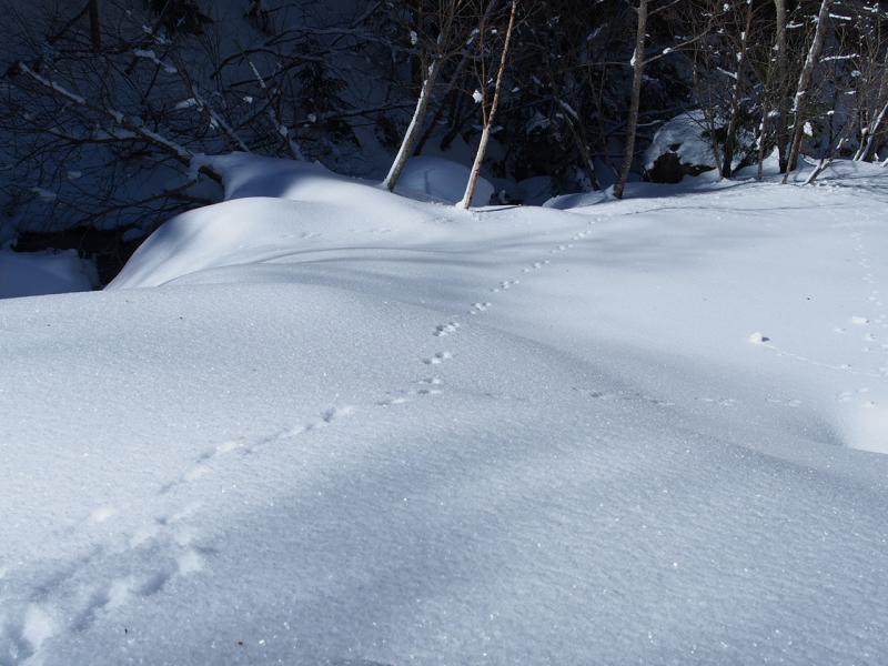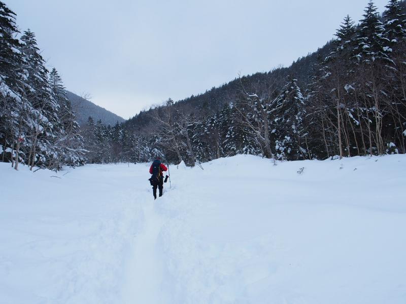 美濃戸口に車を止め、まずは赤岳鉱泉までのアプローチ。4日(1日目)は天気が持ちそうなので硫黄岳まで上がろうと先を急ぎます。美濃戸口から美濃戸まではそこまで凍結は多くなかったのでツボ足で、美濃戸から赤岳鉱泉はチェーンアイゼンを付けました。凍った路面ではよく刃が効いて赤岳鉱泉までの定番アイテムですね。