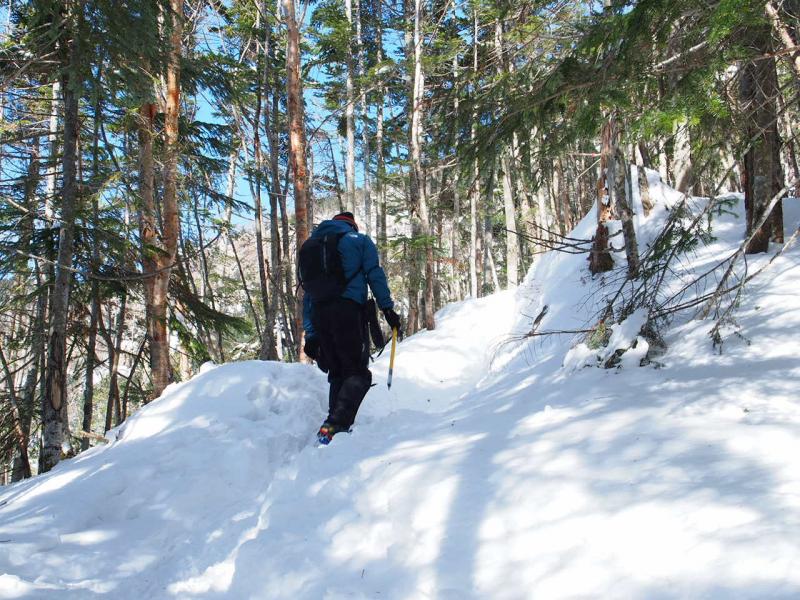 美濃戸~赤岳鉱泉はチェーンアイゼン着用。