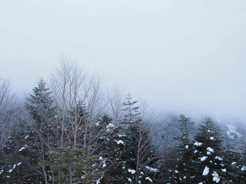 朝起きて、窓の外は真っ白・・・赤岳へ登る予定でしたが、とりあえず中山展望台まで登って判断することに。阿弥陀岳も赤岳も見えず、雪まで舞ってくる始末。というわけで赤岳登頂は諦めて下山することに。