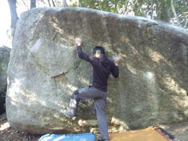 最近ジムでのクライミングばかりでしたのでたまには外岩へと思い、ボルダリングを始めた思い出の地・豊田へ店のスタッフの平田さんと、現地の友人2名とでまったり激しく!?登ってきました。