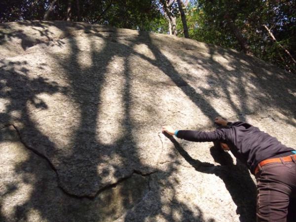 ジムのホールドや恵那の笠置山の岩に慣れている平田さんにとっては、結晶の粗い花崗岩はとても痛かったようでした。