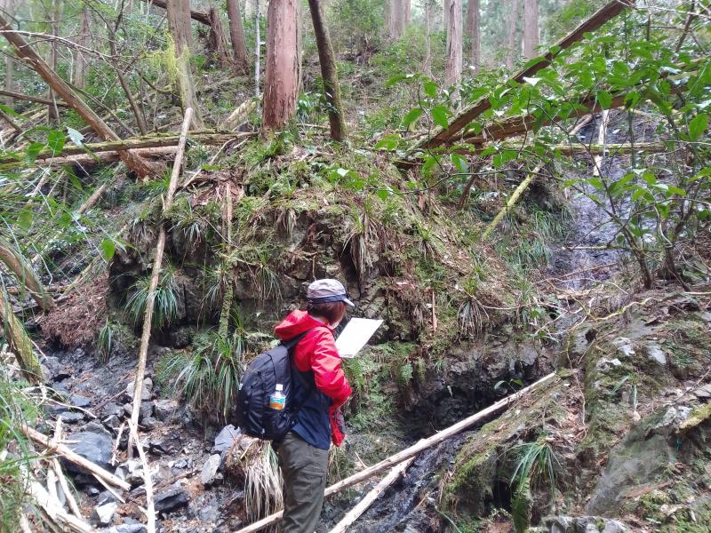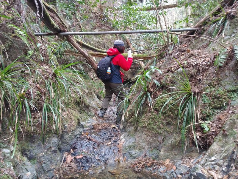 だが5mくらいの滝で進めない。ならどうする?など話ながら目標とする枝尾根のコブへ上がり、予定の尾根に合流します。