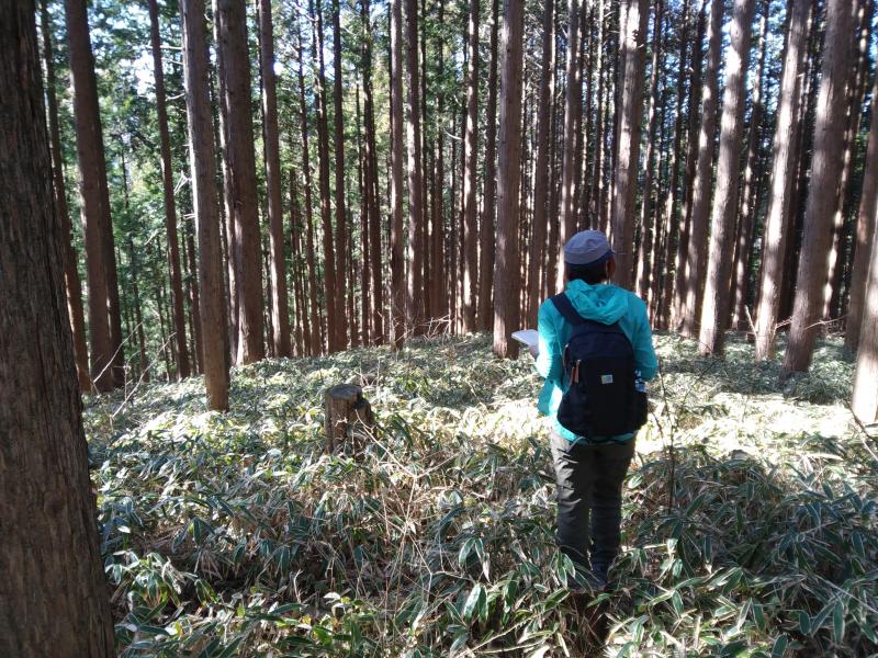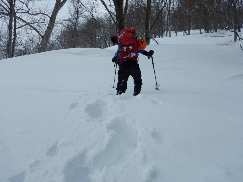 地形図から傾斜の緩い沢と枝尾根を見つけ出し そこからアプローチ。