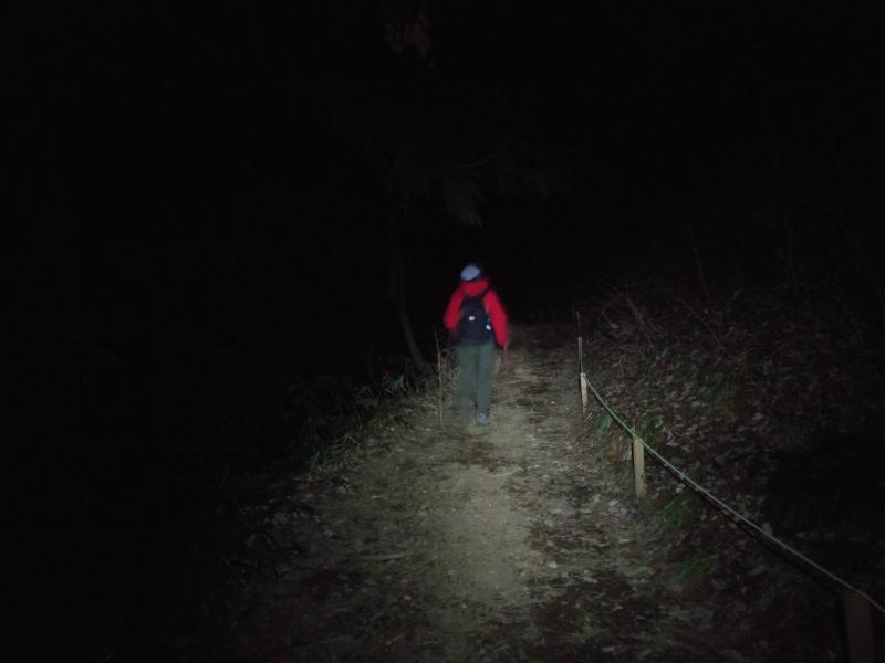 小仏峠で陽が暮れる前にヘッドライトの準備をし さらに進みます。